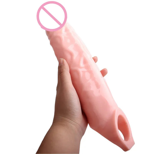 Huge Cock Sleeve Penis Extender Sheath - Lifelike Flesh Dildo Condom Delay Ejaculation