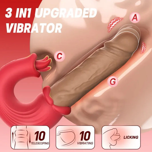 Red Lip Clit Sucking Thrusting Vibrator - Dual-action Vibrating Bullet Tongue Oral Sex Toys