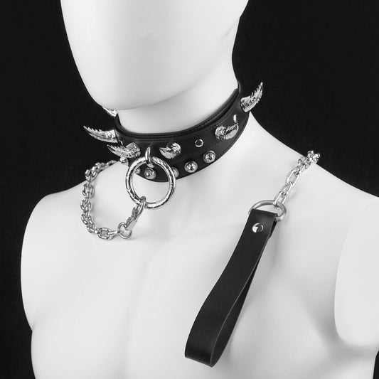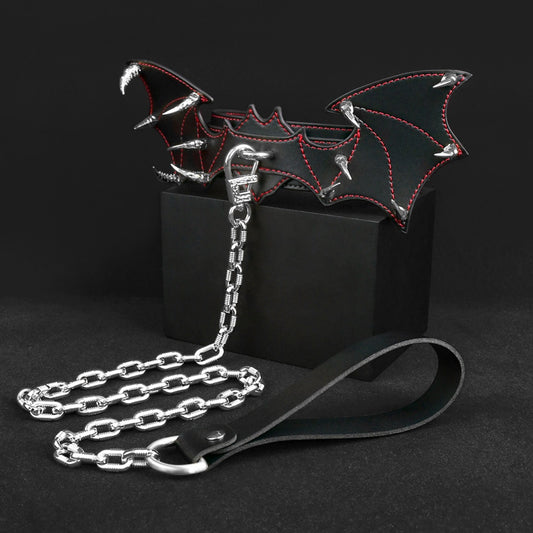 Fantasy Bat-shaped Leather BDSM Collar - Master-Slave Training Strap-on Bondage Toys