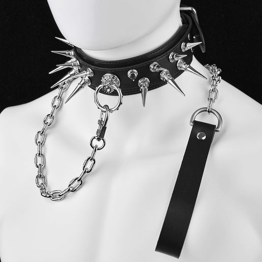 Leather Strap-on Spiked BDSM Collar - Extreme Restraints Training and Dragging Toys