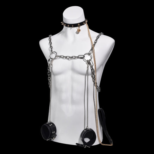 Metal Nipple Clamps Play Bondage Set – Adjustable Strap-on Compatible for Intense BDSM Toys