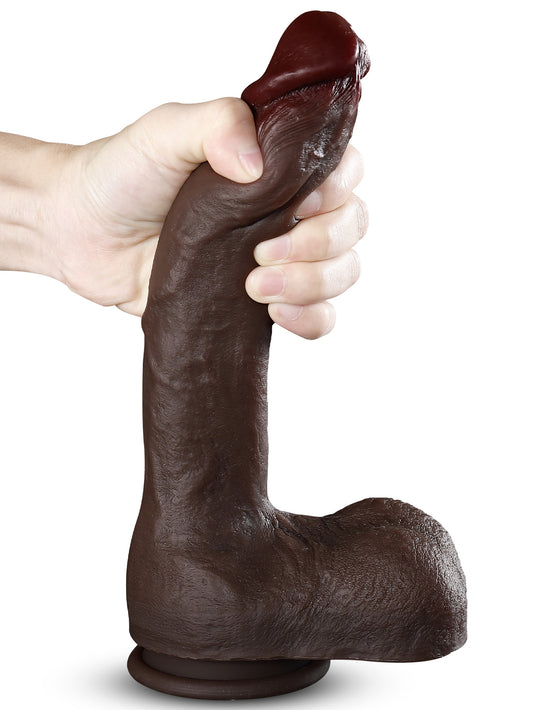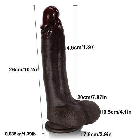 Ebony Dildo Anal Butt Plug - 10-inch Big Testicle Silicone Suction Cup Sex Toy for Women