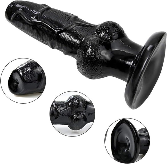 Realistic Black Dildo Suction Cup Butt Plug - Big Testicle Anal Sex Toys for Women Lesbian