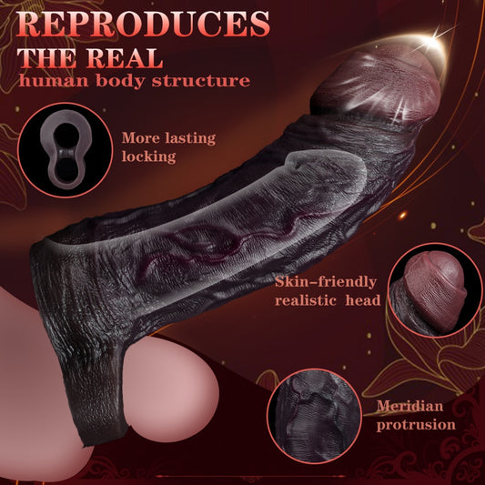 Ebony Cock Sleeve Realistic Penis Sheath - Lifelike Textures Silicone Extender Condom