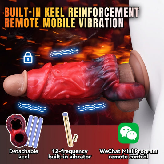 Red Dragon Vibrating Penis Sleeve - Fantasy Silicone Cock Sheath Male Extender