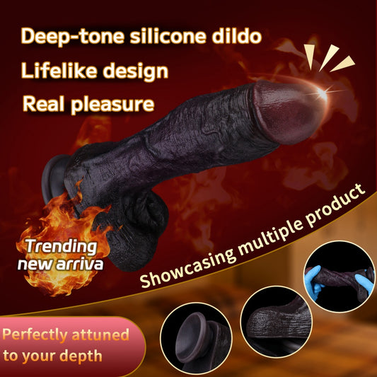 Flesh-Toned Silicone Black Dildo with Suction Cup - Female Sex Toy for Triple Sensitive Zone Stimulation
