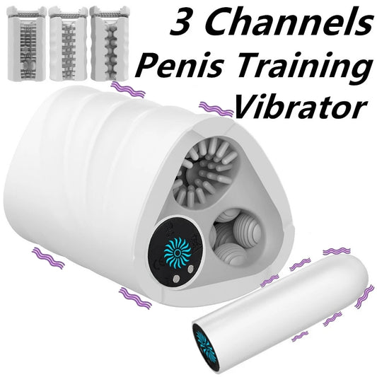 Male Masturbator Penis Trainer - Vibrating Male Sex Toys Penis Delay Ejaculation