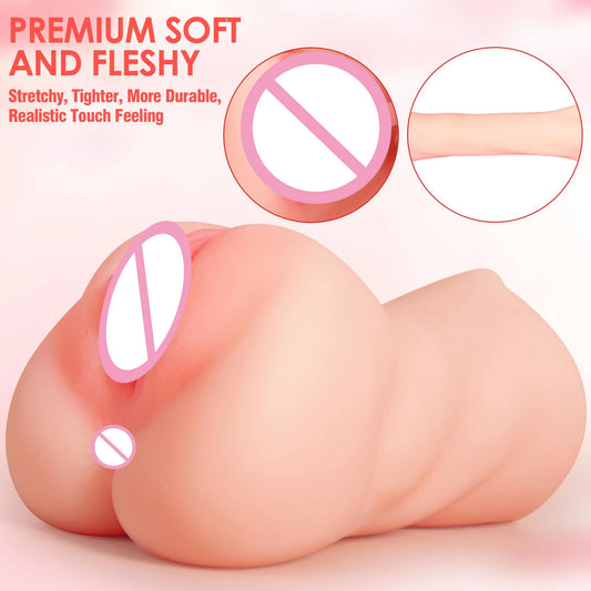 Realistic Pocket Pussy Male Masturbator - 2-in-1 Big Labia Vaginal Sex Oral Sucking Penis Massage