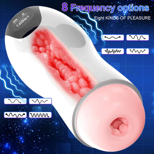 Vibrating Pocket Pussy Male Masturbator - Blowjob Silicone Vaginas Penis Masturbation Sex Toy