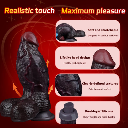 Realistic Dual-Layer Black Silicone Suction Cup Dildo-Deep Vaginal Massage & Hands-Free Pleasure for Women