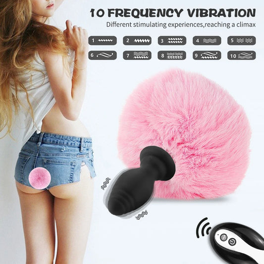 Bunny Tail Butt Plug - Remote Control Fluffy Plush Vibrating Butt Plug Erotic Girl Cosplay