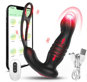 APP Control Thrusting Dildo Anal Vibrator - Remote Control Cock Ring Male Sex Toy