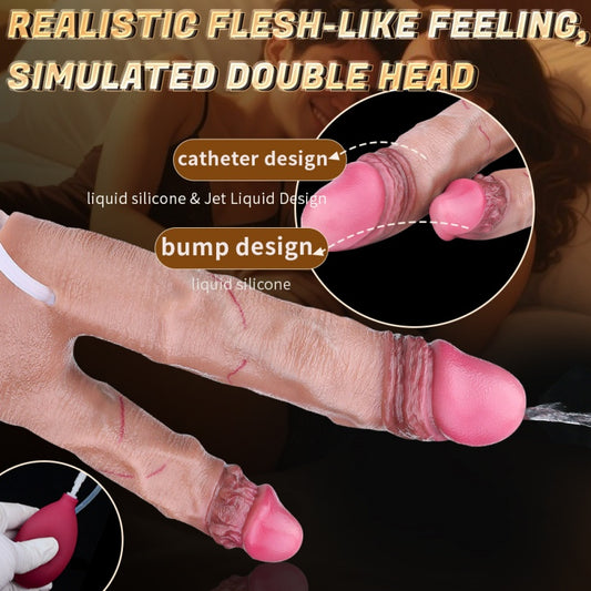 Double-Ended Realistic Squirting Dildo – Flesh Suction Cup Women Masturbating Anal Sex Toy