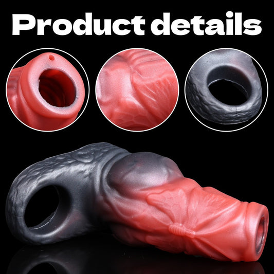 Black Warrior Cock Sleeve Sheath Extender - Dehnbarer Cockring Penishülle Männliches Sexspielzeug