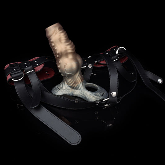 Fantasy Beast Knot Silikon-Penishülle & Ledergeschirr-System: Tragbarer Penisverlängerer für Größe, Verzögerung und Umfang