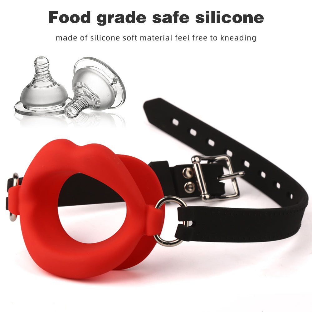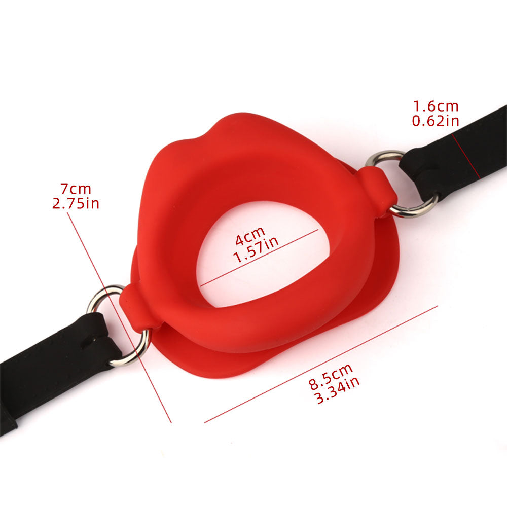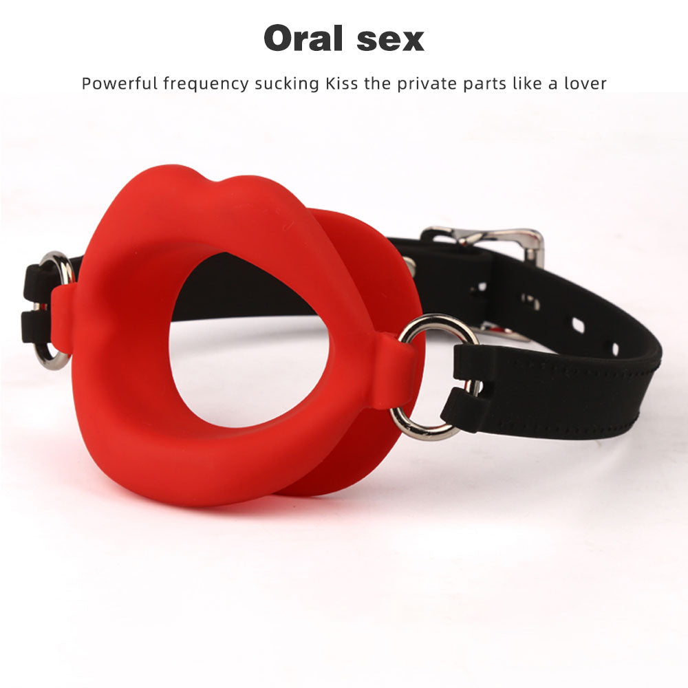 Besonderheiten: Lippenförmiges Design, verstellbarer Gürtel, Ballknebel aus Silikon