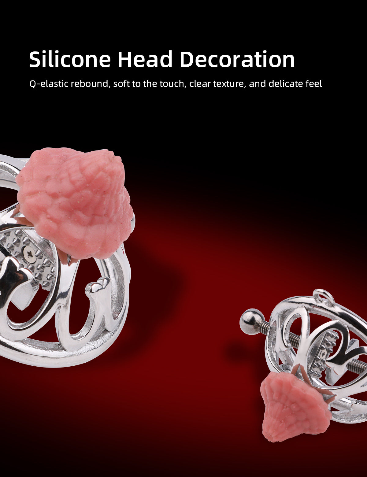 - Visuelle Wirkung: Die Klammern wurden entworfen, um "die verborgenen Wünsche zu wecken". Sie weisen ein kunstvolles, hohles Muster auf, das beim Tragen umwerfend aussieht und als funktionaler Körperschmuck dient.