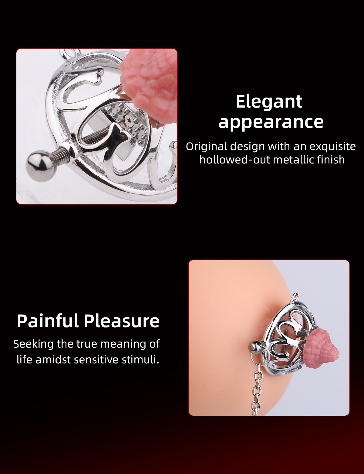 Stellen Sie sich eine Szene bewusster Intimität vor. Sie wählen diese Nippelclips aus und bewundern ihr „elegantes Aussehen“ und das „originelle Design mit einer exquisiten, durchbrochenen Metalloberfläche“.
