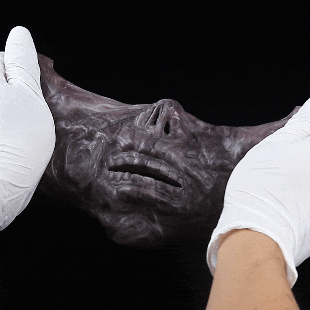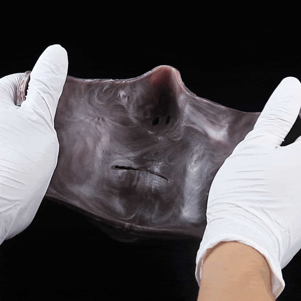 When it comes to pornographic masks and intense play, material is everything. This mask is meticulously crafted from platinum-grade medical silicone, ensuring it is both soft and snug against the skin.