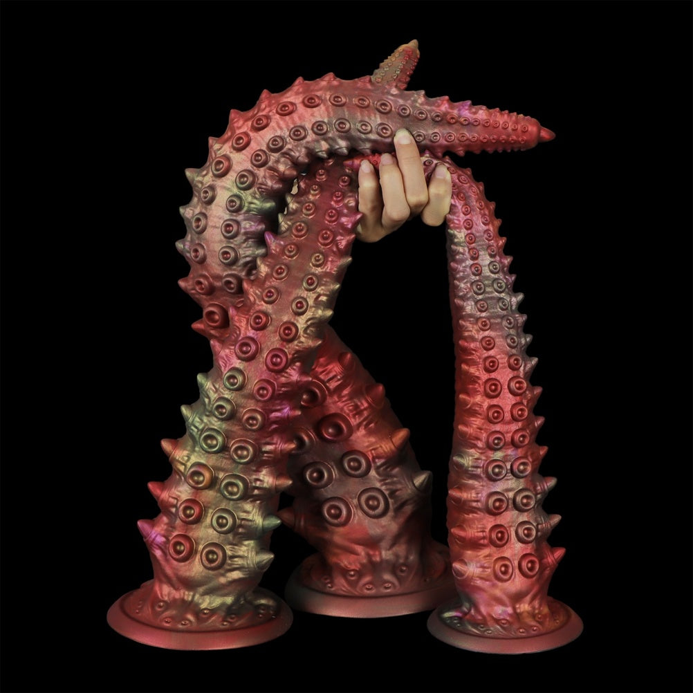 Imagine this: You are in the shower, the steam rising around you. You take your Tentacle Dildo and press the powerful suction cup firmly against the tiled wall. It holds fast, protruding like a creature waiting to be tamed. The metallic red and green scales glisten under the water.