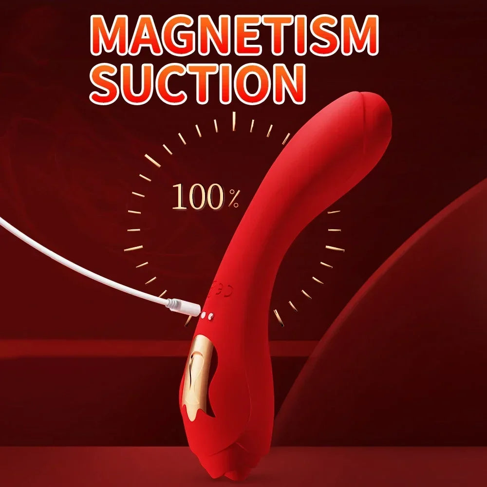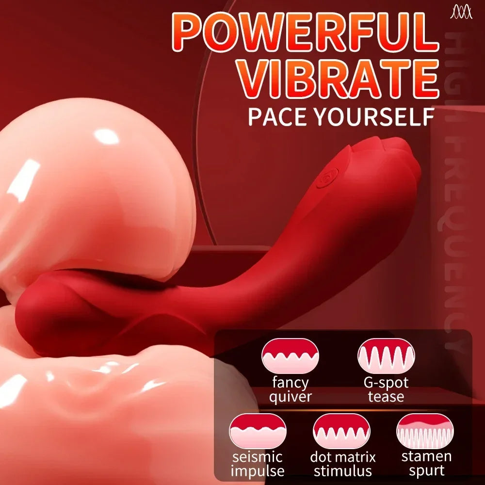 Erleben Sie mit diesem biegsamen vibrierenden Dildo das ultimative G-Punkt-Vergnügen. Mit seiner sinnlichen Rosenform und den zwei Enden kombiniert er tiefe Vibrationen und Flexibilität, um jeden Winkel zu erkunden – perfekt für Frauen, die sich nach Intensität, Eleganz und unvergesslichen Orgasmen sehnen.