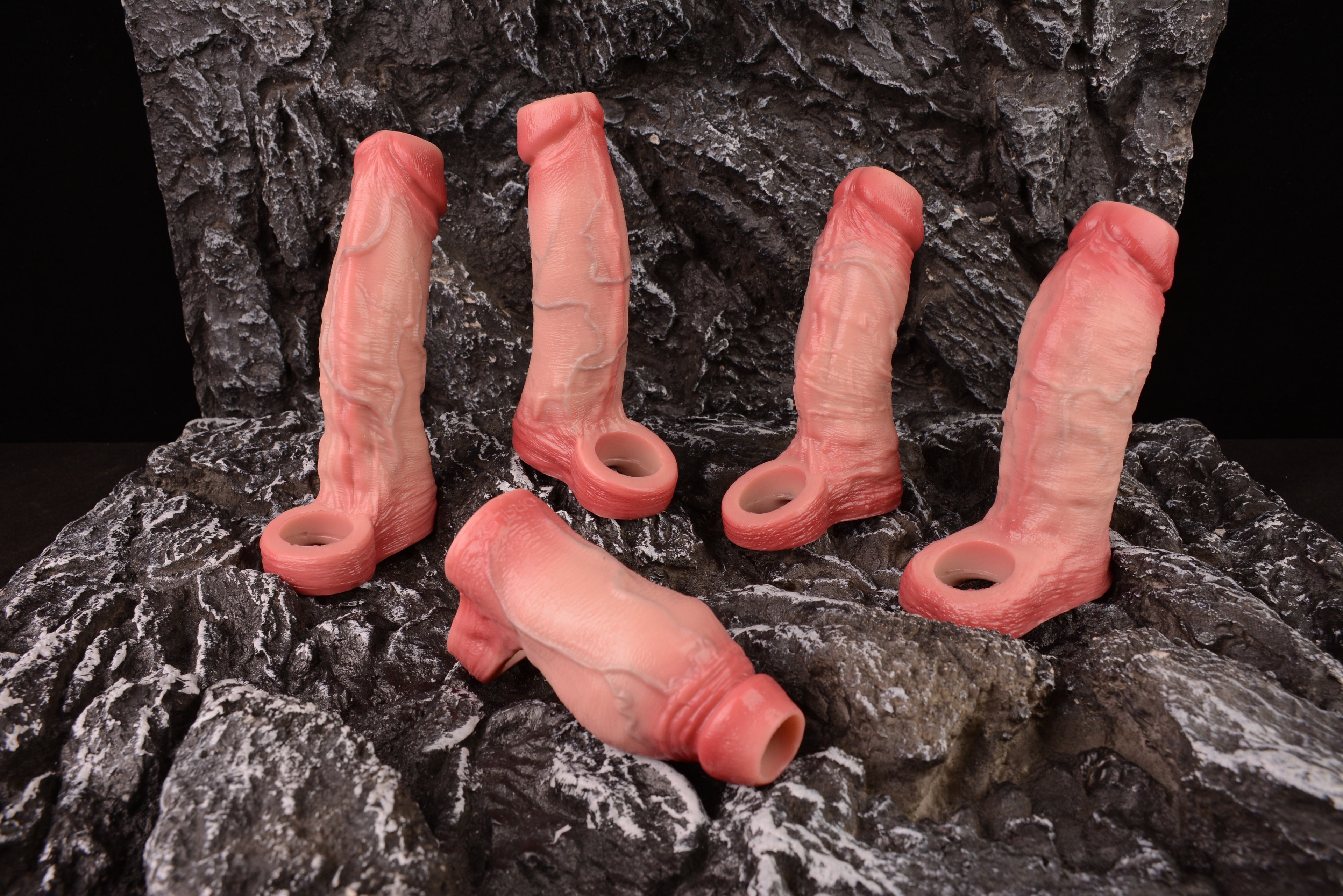 Gaine pénien en silicone réaliste à couverture complète – Amélioration masculine pour le contrôle de l'éjaculation et une circonférence accrue