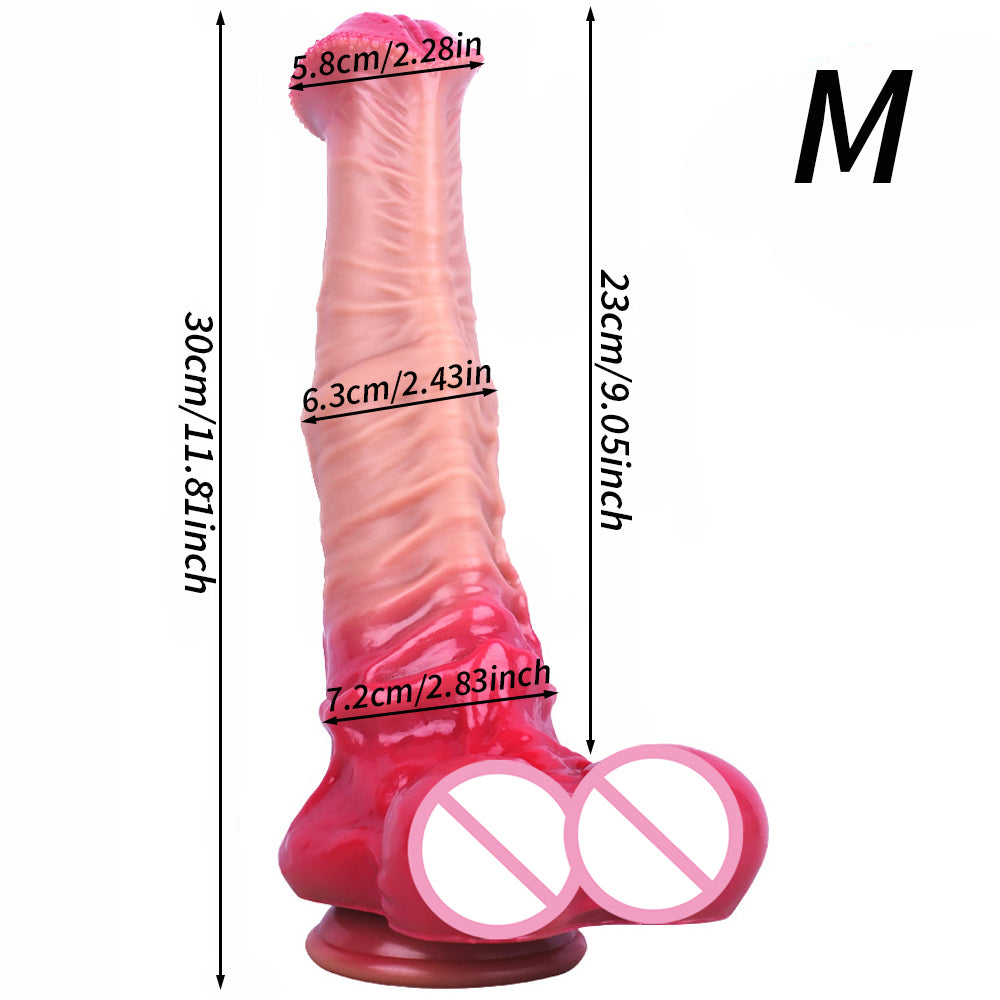 Conception inspirée du cheval, textures animales réalistes, stimulation vaginale et anale, toucher doux en silicone de qualité supérieure, grande taille géante, jeu mains libres à ventouse puissante.