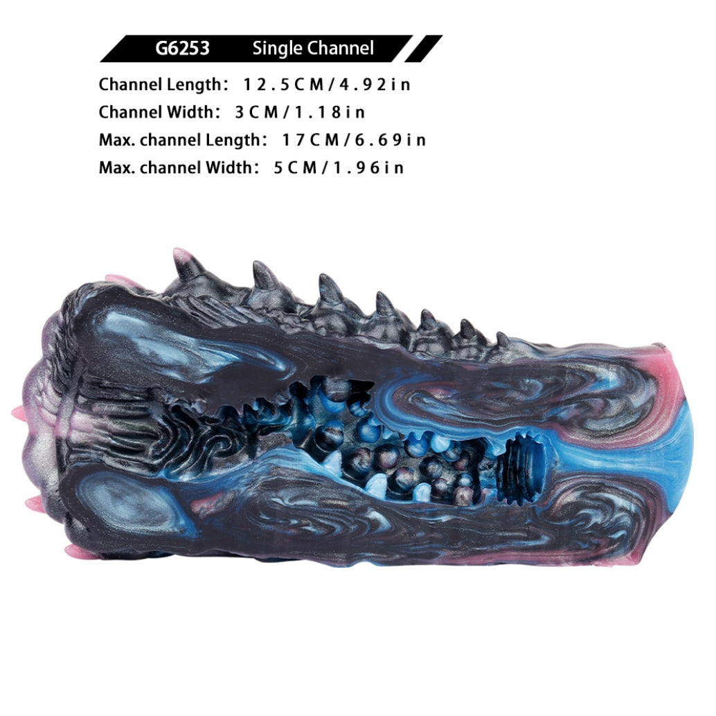 - Texture: Bio-mimetic ridges, entrance spikes, and deep throat channel.