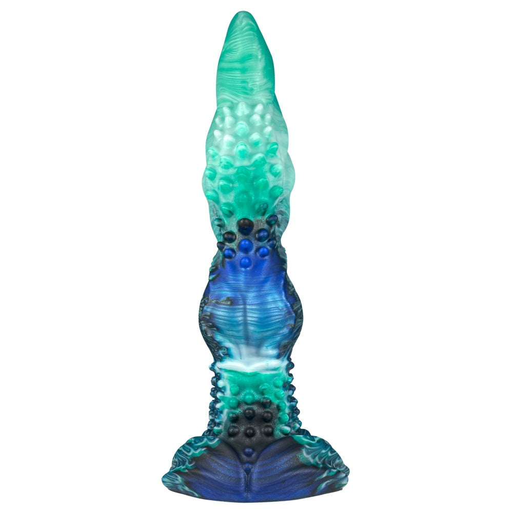 Fabriqué en silicone de première qualité, ce consolador arbore un dégradé bleu et vert hypnotisant, comme forgé dans une galaxie lointaine. Sa forme organique unique transcende le phallus traditionnel, offrant un design « Monstre aux formes spéciales » qui allie esthétique et stimulation physique intense, que vous recherchiez un massage orgasmique profond.