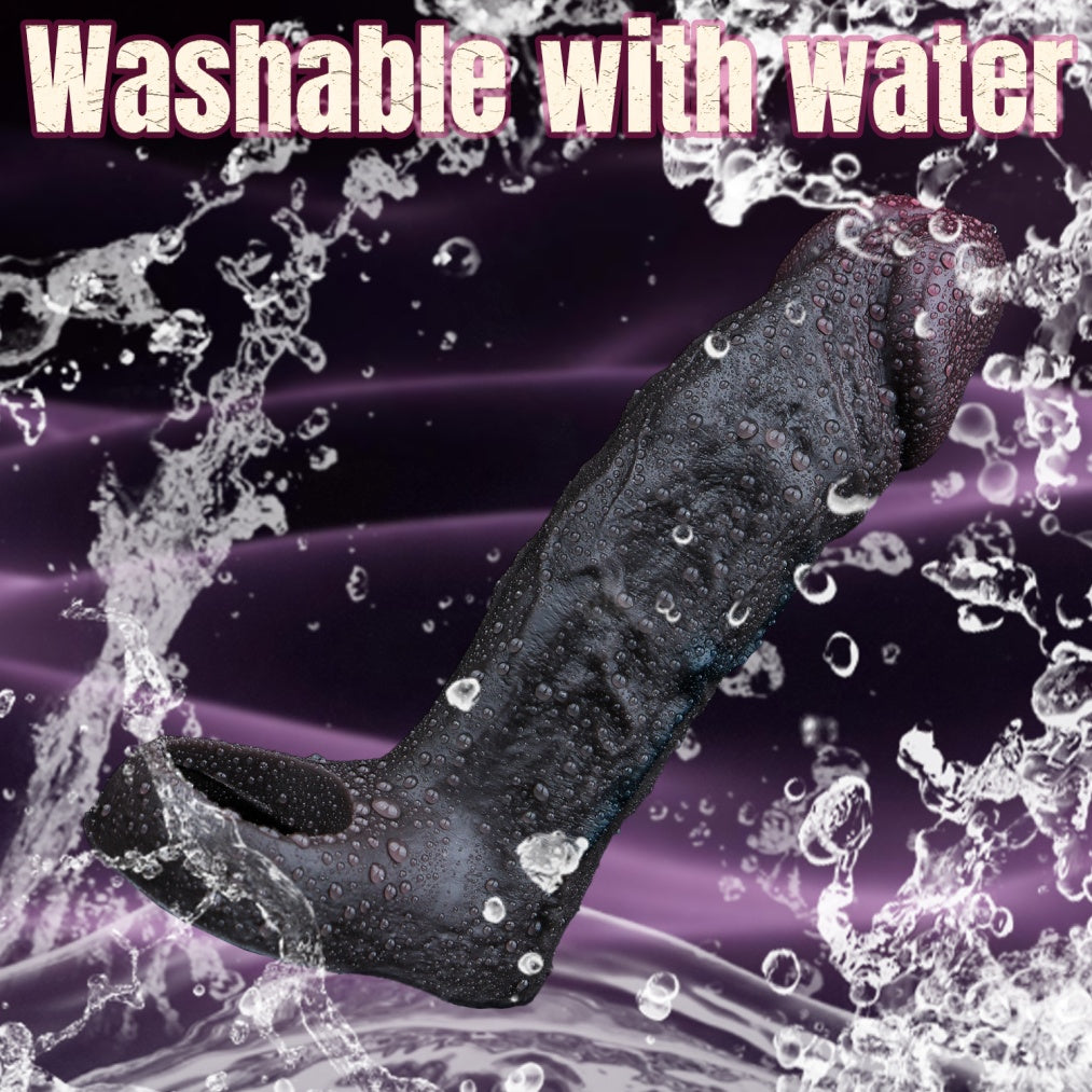 Realistic Black Silicone Wearable Penis Sleeve – Girth Enhancing Cock Extender for Erection Support & Delay