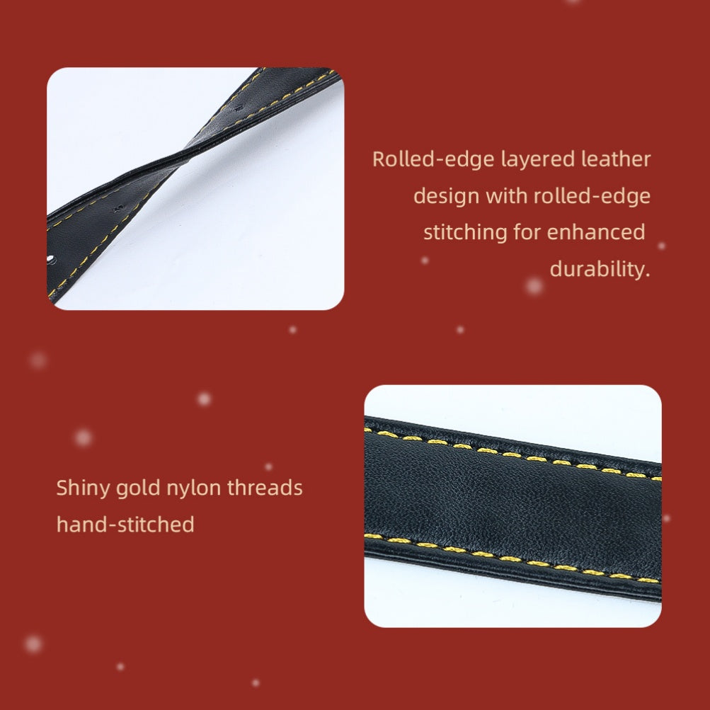 - Hand-Stitching: The strap features shiny gold nylon threads that are hand-stitched.