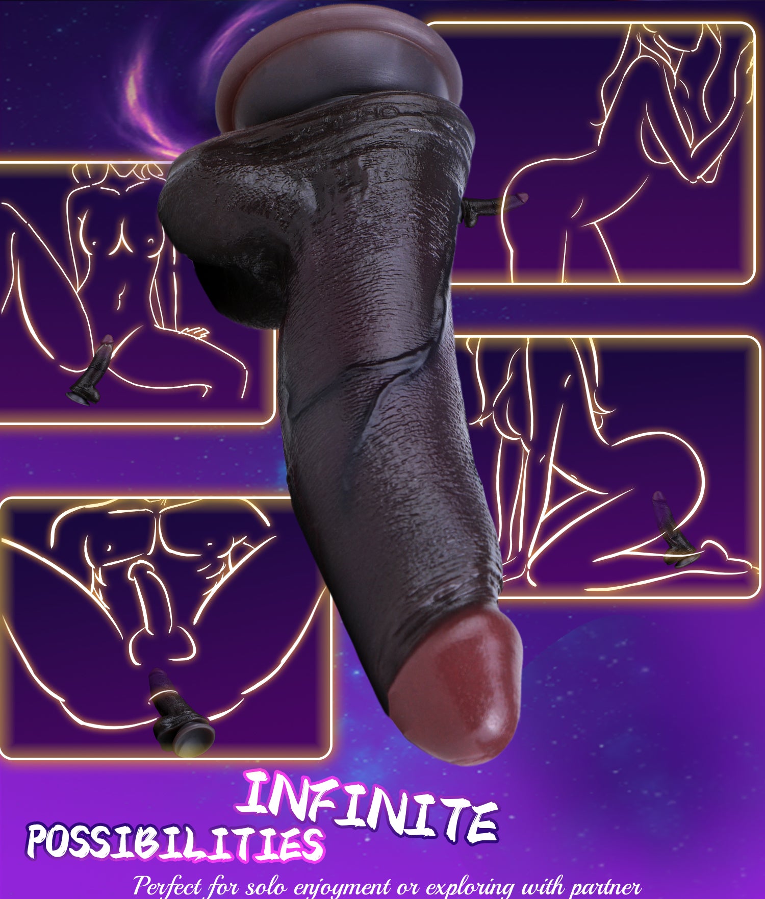 Realistic Dual-Layer Black Dildo-G-Spot Expanding Thick Shaft with Movable Foreskin & Strong Suction Cup