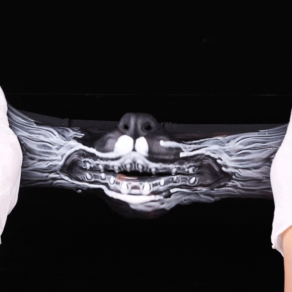 Hyper-Realistic & Intricately Detailed: Crafted from high-quality Liquid Silicone, this mask boasts a realistic appearance with exquisite texture, mimicking a fierce, stylized wolf or demonic creature. The striking details include: