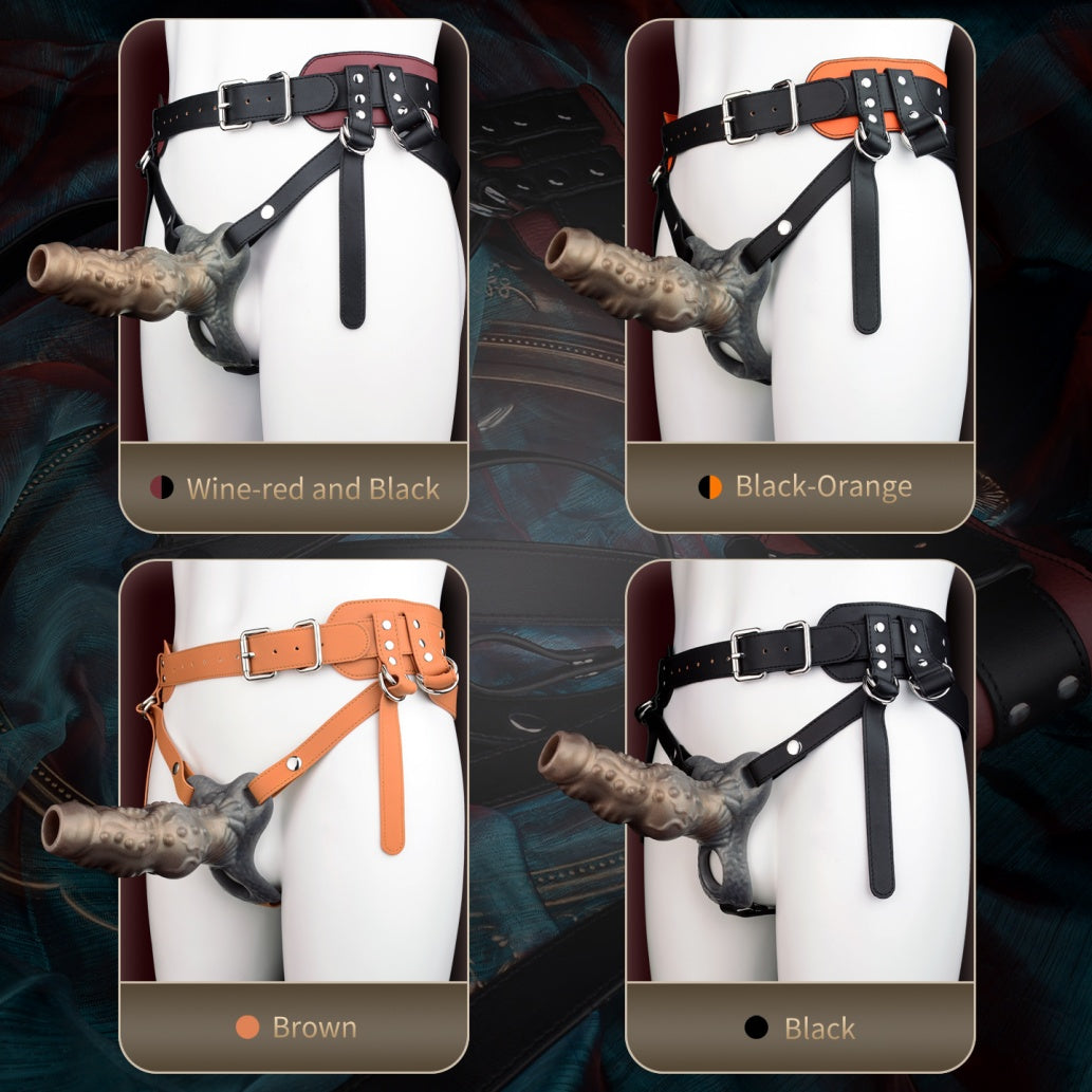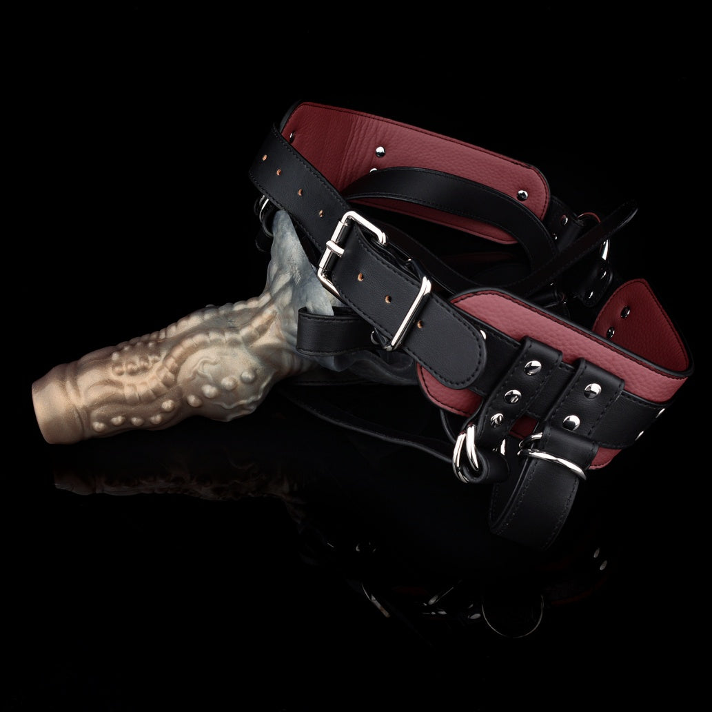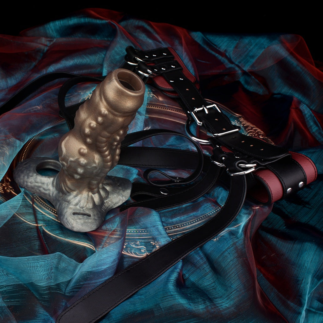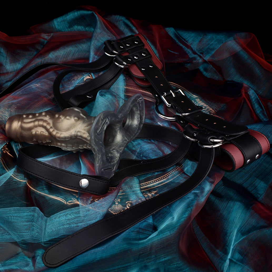 Fantasy Beast Knot Silicone Cock Sleeve & Leather Harness System: Wearable Penis Extender for Size, Delay, and Girth