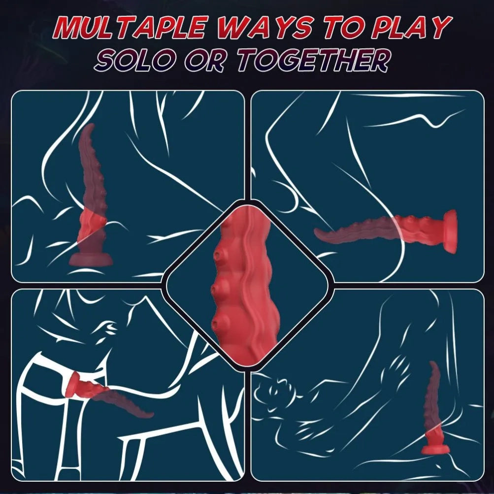 Escape the ordinary and dive into a world of textured pleasure with this Fantasy Vibrating Tentacle Dildo. Designed for those who crave more than just penetration, this red octopus-style toy combines the thrill of fantasy aesthetics with high-tech stimulation.