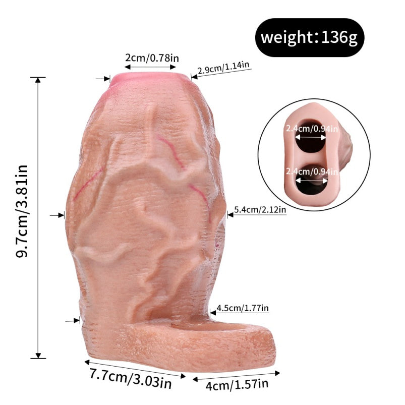 Specifically engineered with targeted bulges and a delay effect for longer-lasting, more intense experiences. This penis sleeve is the perfect solution for anyone looking to enhance their cock size, extend intercourse duration, and maximize mutual satisfaction.