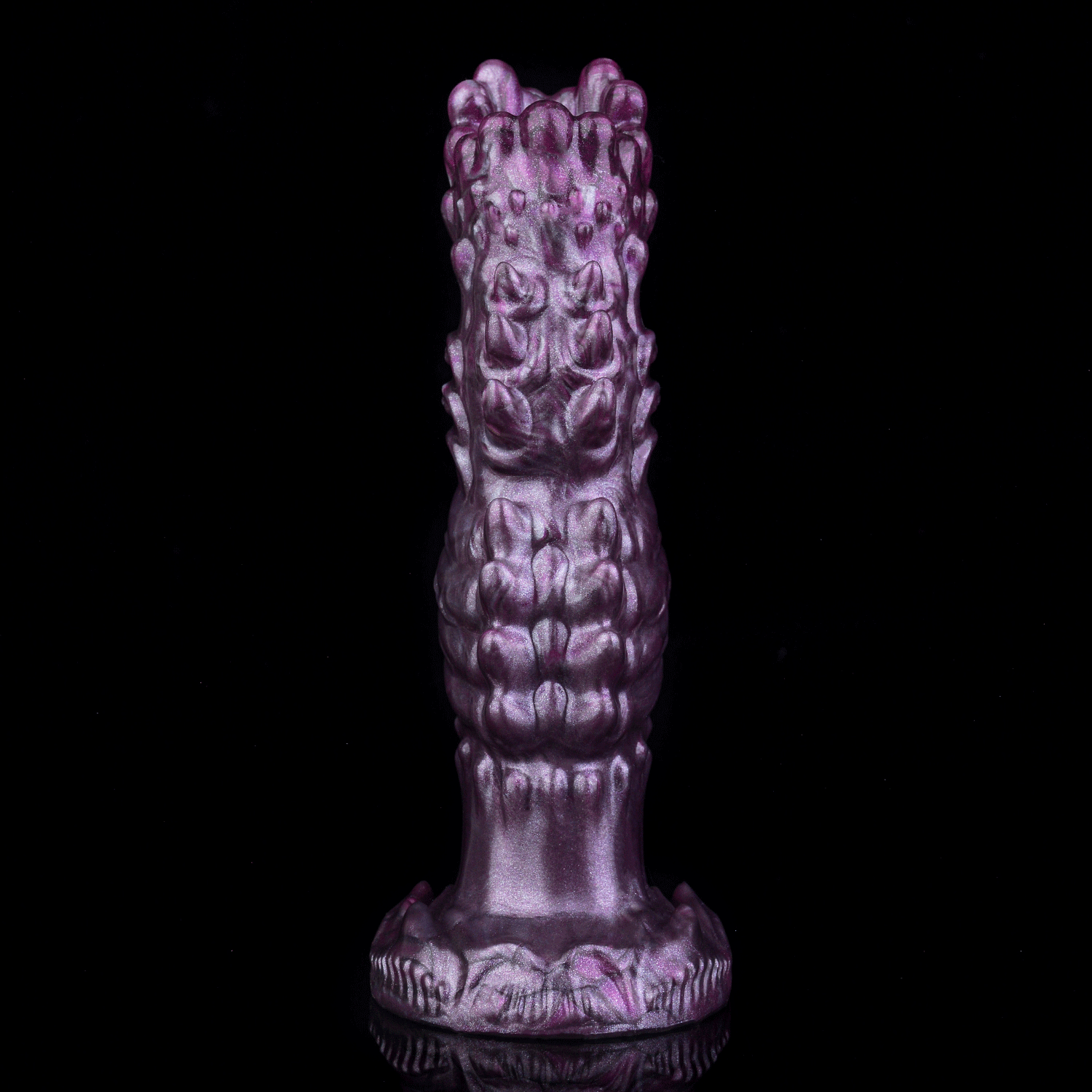 - Mid-Shaft Zone — Dense spike clusters in organic, asymmetric patterns; maximum friction for the most sensitive vaginal wall region