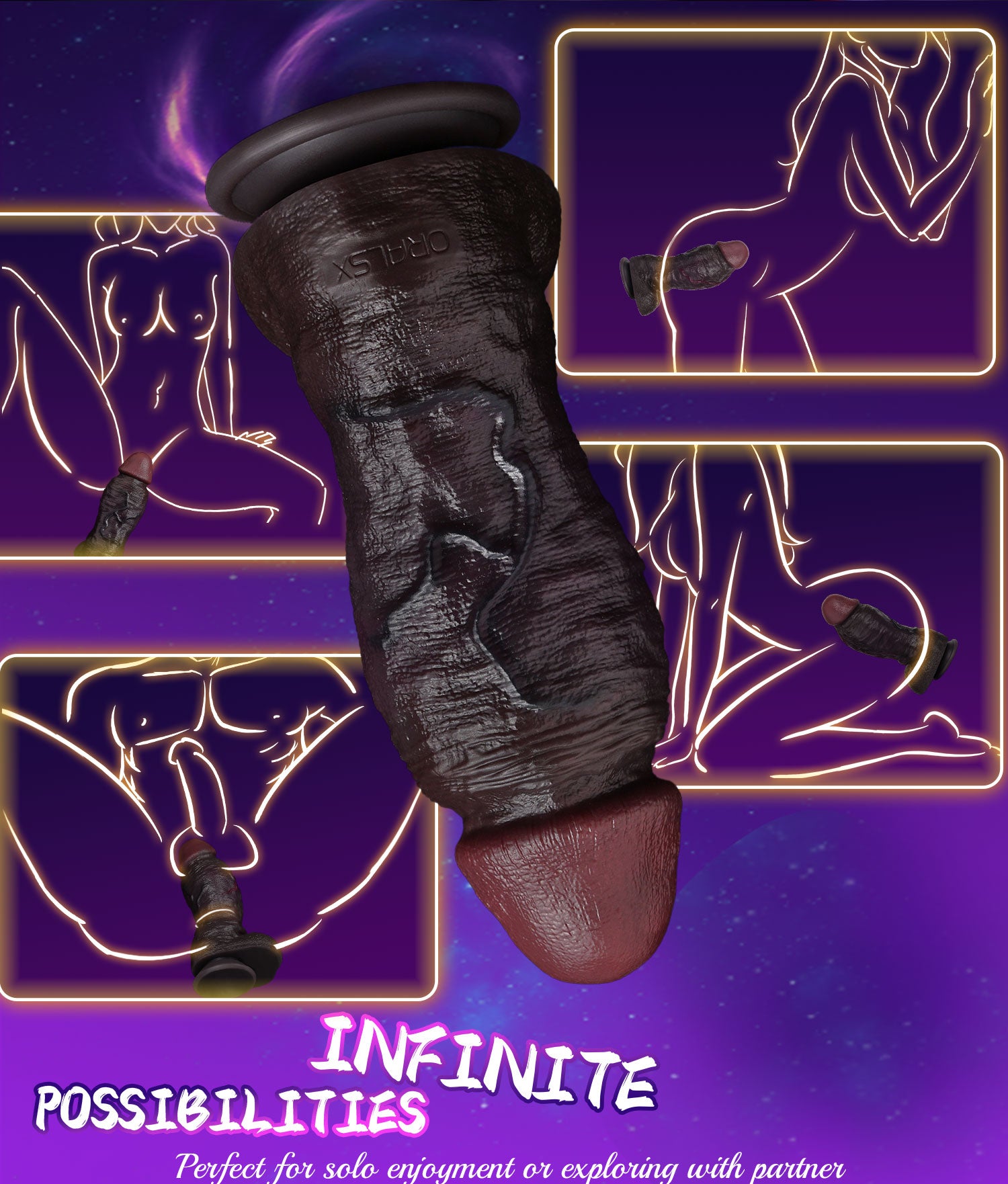 Realistic Dual-Layer Black Dildo-G-Spot Expanding Thick Shaft with Movable Foreskin & Strong Suction Cup