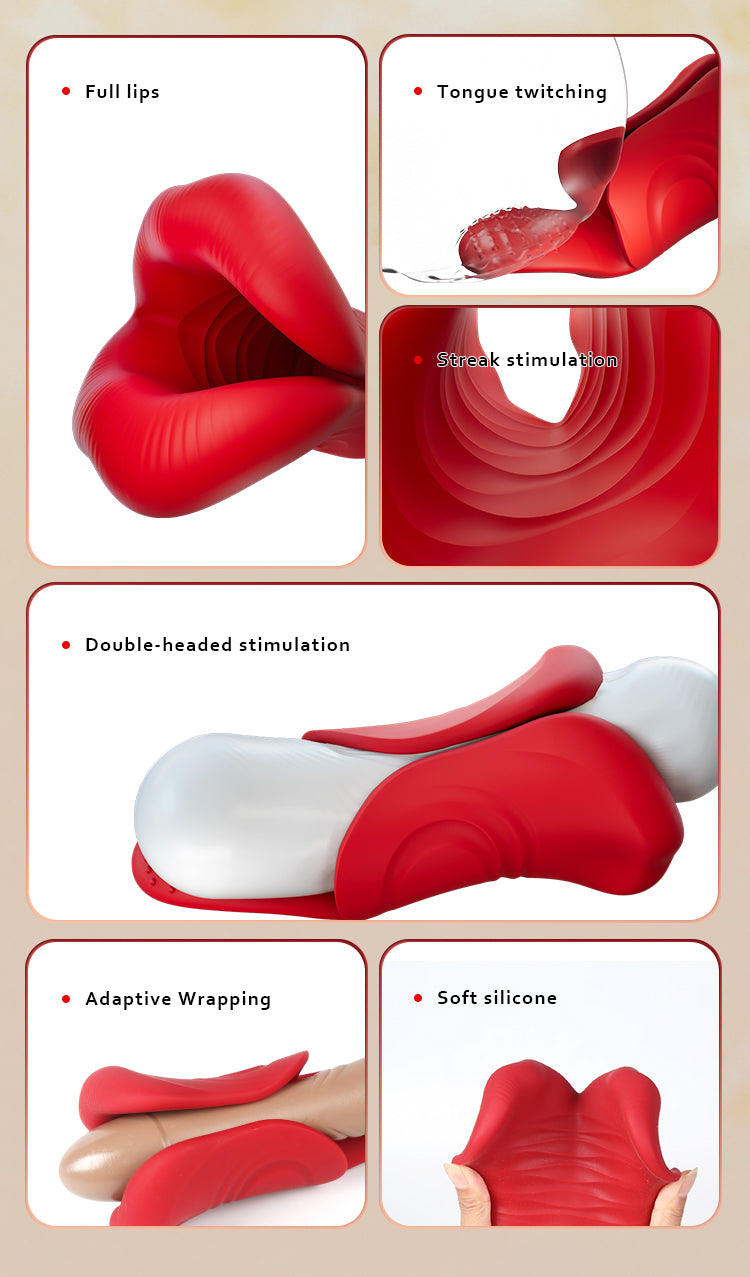 The internal structure is molded into a realistic lip shape, designed to "suck in" and provide comprehensive stimulation to the entire length of the glans and shaft.